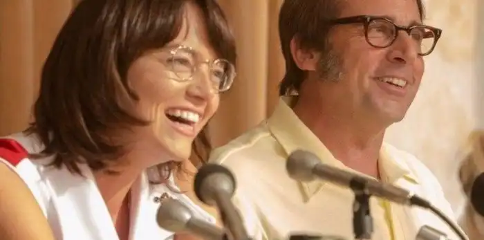 70-е, теннис, спортивная драма/комедия. Стив Каррел и Эма Стоун разыгрывают реальный теннисный поединок, произошедший между действующей на тот момент чемпионкой среди женщин Билли Джин Кинг и бывшим чемпионом Бобби Риггсом в 1973 году. Билли боролась тогда за равные гонорары у спортсменов в независимости от пола.