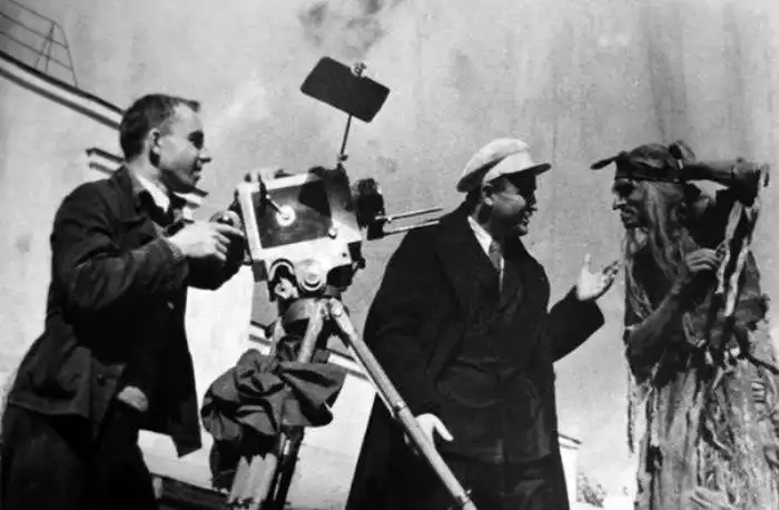 Режиссер на съемках фильма *Новые похождения кота в сапогах*, 1958