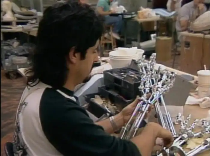 А вот «раны» от пуль на теле робота последнего поколения делали без компьютера. Актер надевал специальный жилет с взведенными на пружинах «розочками» из вспененной резины. Как только в Т-1000 должна была попасть пуля, ассистент удаленно активировал пружину — «дырка» от выстрела раскрывалась. Зато затягивать все раны пришлось с помощью компьютерной анимации.
