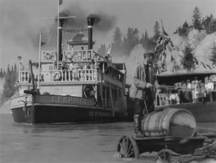 На съёмки в Нижний Новгород из Московского речного порта вышла небольшая флотилия — пароход «Памяти Кирова» с актёрами, буксир, построенный специально для съёмок пароход «Севрюга» и игровая баржа. Потом тем же составом отправились на Каму и в конце концов выплыли на Волгу. Заканчивали съёмки на канале Москва — Волга, был уже октябрь, а предстояло снять как герой Игоря Ильинского бросался в воду. Прыгать актёру предстояло примерно с восьми метров, в костюме и с портфелем. С первого раза дубль не удался — заело плёнку. Во второй раз пароход качнуло на волнах, и Ильинский не попал в кадр… Удача улыбнулась окончательно замерзшему и усталому Ильинскому только на седьмом дубле!