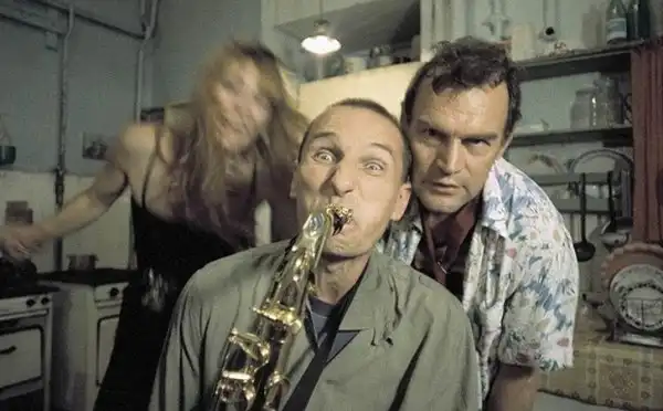 В машину таксиста Ивана Шлыкова садится пьяная богемная компания во главе с талантливым джазовым музыкантом Алексеем Селиверстовым. Таксист возит веселых пассажиров по Москве, но после клиенты сбегают, не заплатив. Иван, настоящий мужик советской закалки, находит Селиверстова, отбирает у него саксофон и заставляет отрабатывать деньги, поселив саксофониста у себя дома. Так начинается история их странной дружбы, где будут и огонь, и водка, и медные трубы, и, конечно, точно переданная атмосфера абсурдных и безумных 90-х.