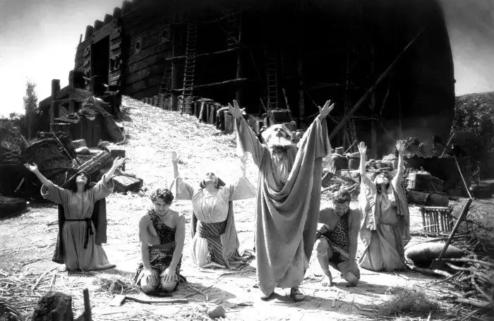 Съемки фильма, в котором библейский сюжет идет параллельно повествованию о первой мировой войне, обернулись самой настоящей трагедией. Попытка имитировать водяной вал, который катился бы, сметая всё и всех на своём пути, была удачной с точки зрения достоверности. Но вот самим актёрам вовсе не надо было изображать на лицах панику и ужас. В момент съёмок обрушившаяся вода действительно пронеслась, как цунами. Погибли сразу три актёра из массовки, ещё один потерял ногу, десять человек получили переломы, а уж ссадины и ушибы уже никто не считал. Долорес Костелло заболела воспалением лёгких, а юный Джон Уэйн чудом избежал смерти. После этого случая были введены строгие правила техники безопасности на съемочных площадках.