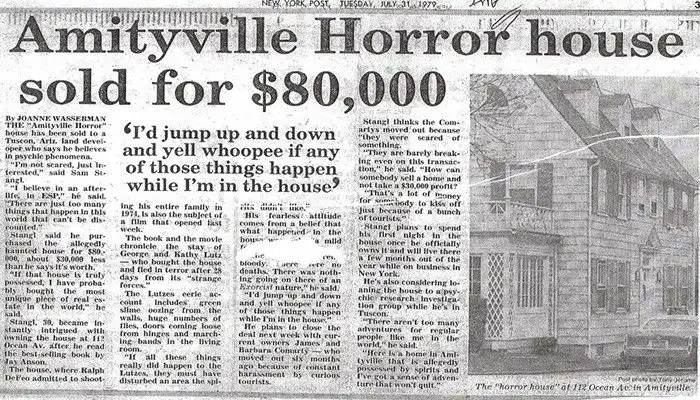 Действительно, убийство Рональда Дефео-младшего имело место быть. Он жил со своей семьей в Амитивилле, и, следуя указаниям голосов в своей голове, однажды убил отца, мать и четырех своих братьев и сестер, пока те спали. Через год в этот дом действительно, как и в фильме, переехала семья Латцов, но через 28 дней они съехали, узнав о прошлом этого дома. Латцы рассказали об ужасах, которые творились с ними, пока они там жили, и именно основываясь на этих записях позже писатель Джей Энсон написал свой роман, который стал основой для фильма.