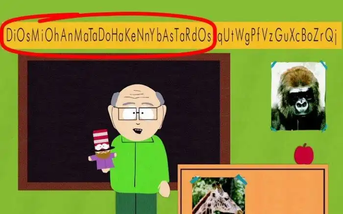 6. Алфавит в классе мистера Гаррисона из «Южного парка» содержит скрытое послание