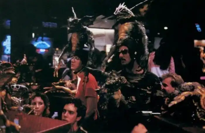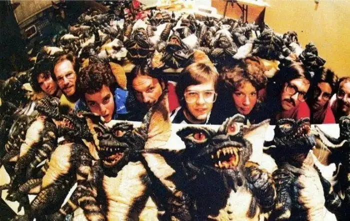 Вся команда спецэффектов в сборе. Их, кстати, на съёмках обижали постоянными подозрениями. Главный актёр фильма Зак Гэллиган рассказывал, что студия настолько переживала на тему потраченных на производство гремлинов денег, что их служба безопасности чуть ли не каждую ночь заставляла съёмочную группу показывать, что хранится у них в багажниках и шкафах в гостиничном номере. Они очень волновались, что кто-то может украсть дорогущий реквизит.