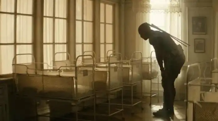 2. Дэдпул, пытающийся убить Гитлера во младенчестве в фильме "Дэдпул-2"