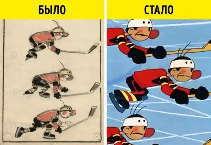 Вот так художники тренировались, прежде чем выпустить мультяшных хоккеистов на лед. Кстати, похожие эскизы можно увидеть в самом мультфильме — в виде фотографий.