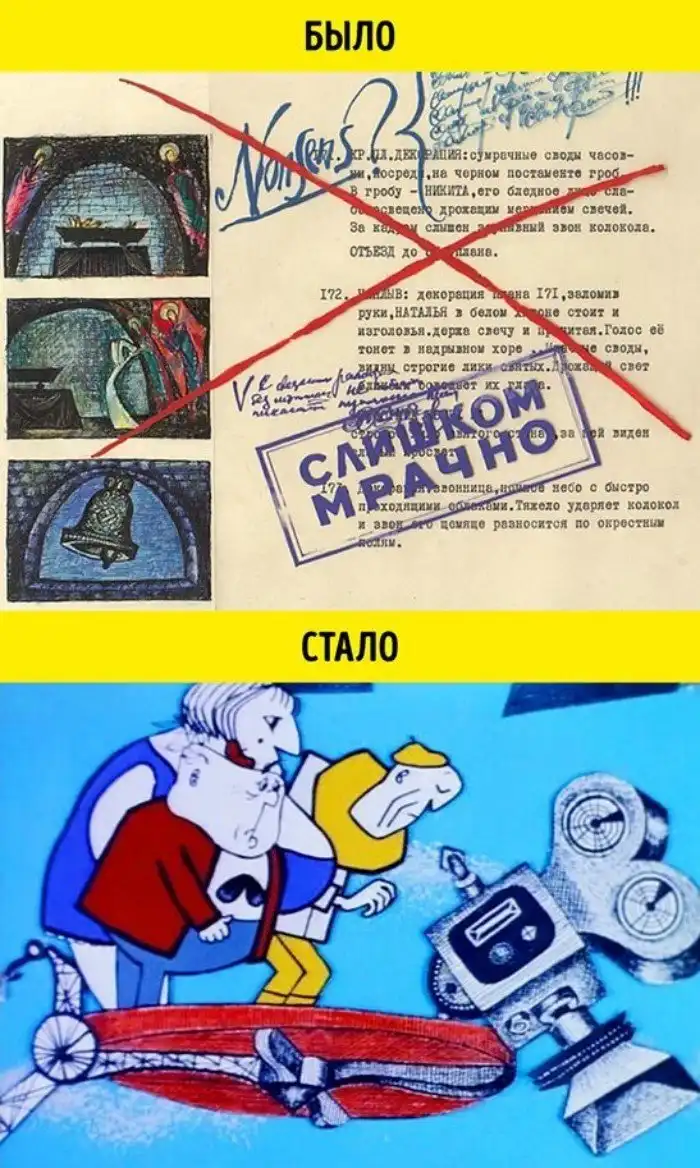 Первые наброски знаменитого мультфильма не прошли советскую цензуру — они показались слишком мрачными. В фонде Музея кино хранятся еще несколько эскизов к сценам, которых советские зрители так и не увидели, так как они не вошли в итоговую версию мультика.
