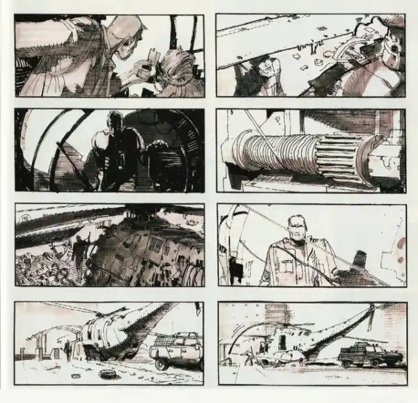 Он проработал внешний облик постапокалиптического Лос-Анджелеса, полностью продумал как будет выглядеть каждый кадр - у режиссёра уже были готовы раскадровки, выполненные Сильвианом Деспретцом