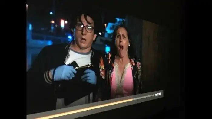Кофта на девушке выворачивается на неправильную сторону и обратно на протяжении всей сцены.