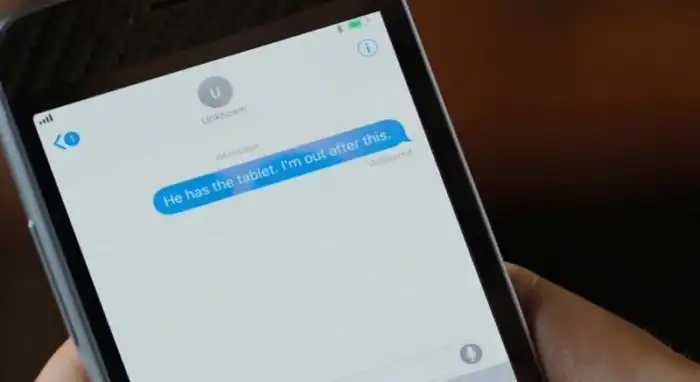Герой разговаривает по телефону, но на экране устройства видно, что он всё ещё не ответил на звонок.