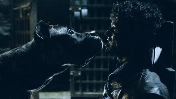 В сцене погони за Сансой и Теоном присутствовали гончие псы, которые шли по следу беглецов. Но после того как их спасла Бриенна - псы исчезли, как не бывало
