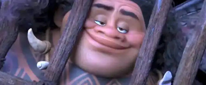 В этой сцене Мауи говорит Моане, мол если водное течение тёплое - мы плывём в верном направлении. Далее Моана окунает руку в воду, и сообщает, что вода теплеет. Но практически сразу, глядя на Мауи, она понимает настоящую причину потепления воды...