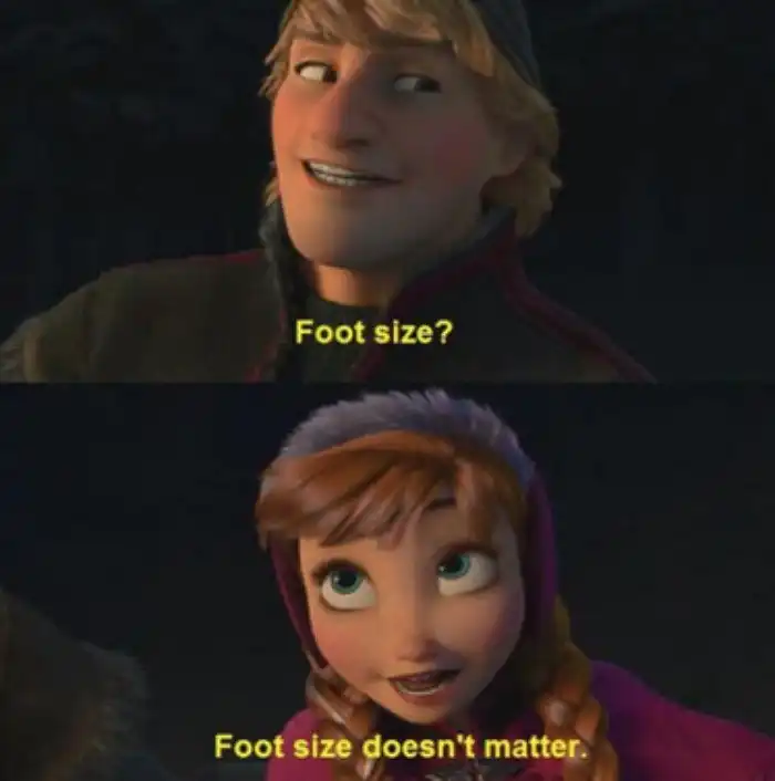 Двусмысленность - это классно! Диалог, в котором Кристоф допытывается у Анны, всё ли она знает о своём так называемом "женихе". Среди вопросов - "А какой у него размер ноги?". На что Анна с ироничным взглядом отвечает: "Размер ноги не имеет значения".