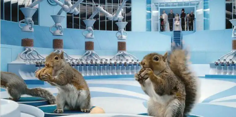 Режиссер Тим Бертон не хотел использовать анимированных белок, потому что был уверен, что их неестественность будет заметна на экране. Он решил отложить работу над фильмом, чтобы найти и выдрессировать 40 настоящих белок. Они научились выполнять все трюки самостоятельно, и только тогда начался съемочный процесс.