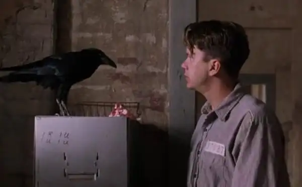 Когда Энди отправляется в библиотеку, чтобы начать работу помощника Брукса, ворона управляющего библиотеки часто каркала, и Тиму Роббинсу нужно было правильно подобрать время, чтобы сказать свою фразу: "Эй, Джейк. Где Брукс?". Роббинс внимательно изучил временные отрезки, когда ворона каркает. В фильме можно заметить, как Роббинс осторожно наблюдает за птицей, приближаясь к ней, ожидая, когда она каркнет, чтобы потом произнести свою фразу.