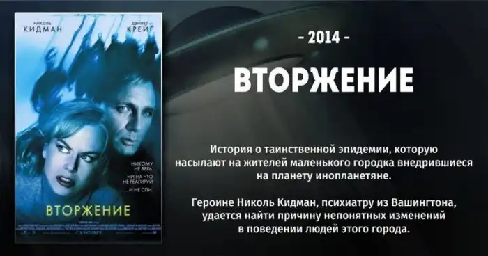 Почти все фильмы о манипулировании инопланетянами людьми или замене на аналогичные копии базируются на трёх произведениях: "Кукловод" Р. Хайнлайна, "Похитители тел" Д. Финни и Д. Кэмпбелла мл. "Кто идёт?". Возможно из-за этого, все фильмы немного похожи друг на друга. Итак, вы запаслись попкорном.