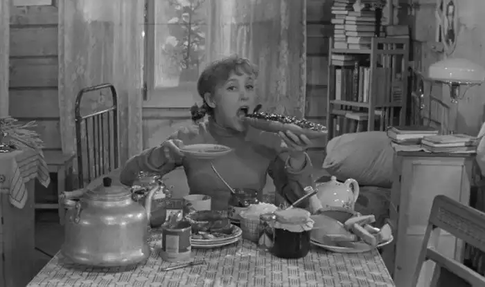 На экране она выглядела на 55 лет, играя 36-летнюю главную героиню фильма «Служебный роман», когда ей самой было 43 года. Добиться нужного эффекта помог прекрасный грим и ужасная одежда.