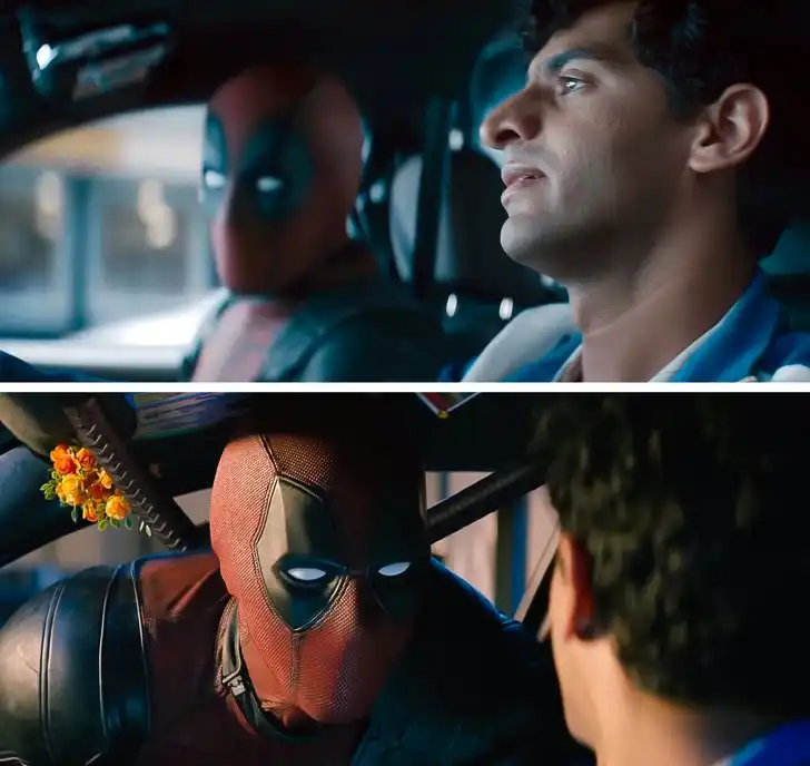 - В одной и той же сцене второй части «Дэдпула», где главный герой едет на такси и общается с водителем, букетик цветов в правом углу машины то появляется, то исчезает.