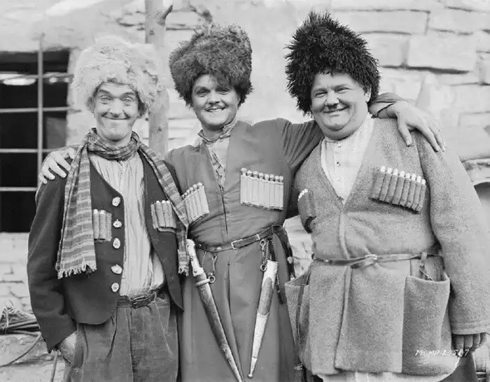 Не спорю, три актёра с фото действительно похожи на Труса, Балбеса и Бывалого из "Кавказской пленницы", в тех моментах сюжета, когда они изображают кунаков влюблённого джигита.