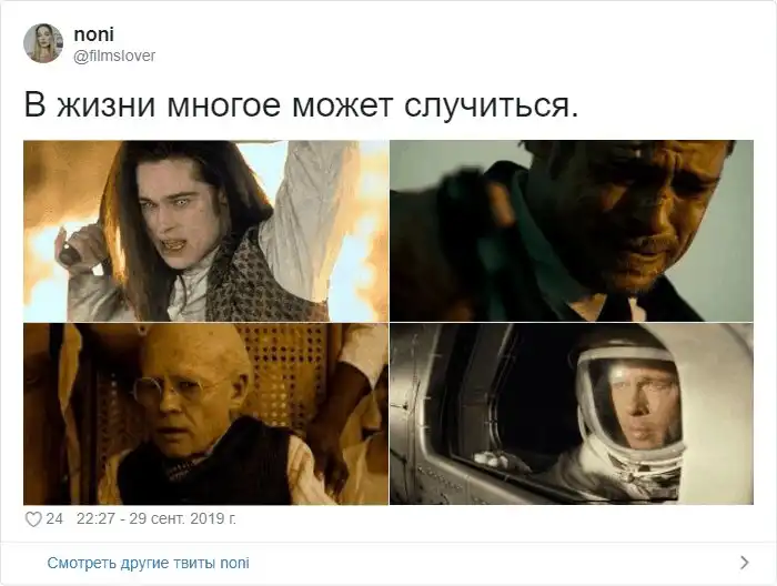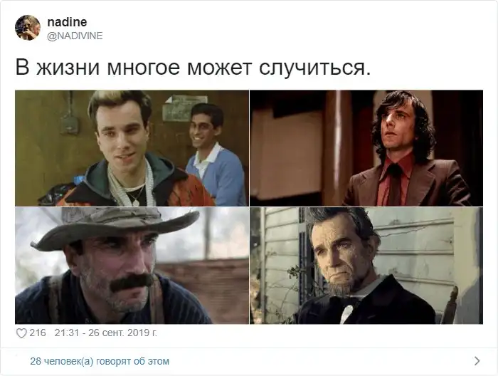 Пользователи соцсети тут же превратили этот пост в шаблон, куда стали вставлять других актёров и кадры из их фильмов. Ну в самом деле, когда ты снимаешься в кино, кого только не приходится играть! Давайте посмотрим, кого актёрская жизнь потрепала сильнее.
