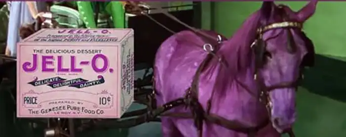 В старом добром фильме 1939 года «Волшебник страны Оз» в одном из эпизодов можно увидеть лошадок фиолетового цвета. Чтобы сделать лошадь такого замечательного, но необычного цвета, съемочная группа создала краску на основе концентрата виноградного желе, которая бы не навредила животным в процессе съемок, ведь иначе кинематографистам пришлось бы иметь дело с обществом защиты животных. Желатиновый порошок сотворил чудо, да вот беда – лошади обнаружили, что их краска вкусная и постоянно слизывали ее друг с друга.