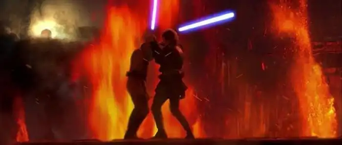 «Лава» на Мустафаре была липкой, а не горячей. В сцене финальной схватки Оби-Вана с Энакином («Звездные войны. Эпизод III: Месть ситхов»)