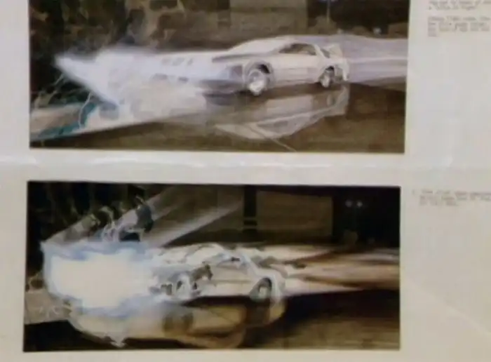 На Делориан закрепили трубки с неоновым светом. Потом на студии просто эффект усилили