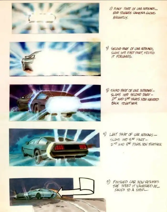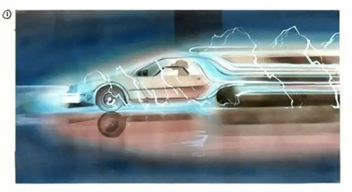 То, как будет выглядеть путешествие во времени, было одной из деталей, которые Гейл и Земекис не описали в сценарии никак. Только сам факт перемещения. Решение было принято только после разговора с художником Роном Коббом, когда узнали его мнение по этому поводу.