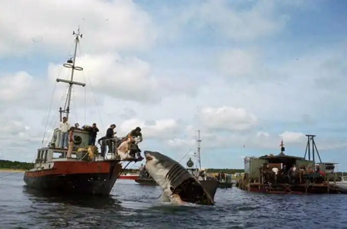 Самая известная фраза из фильма «Челюсти» сначала была просто шуткой, которая бытовала на съемочной площадке. Лодка, буксирующая баржу со съемочной группой и оборудованием для съемок в море, была смехотворно мала, поэтому всякий раз, когда что-нибудь шло не так, киношники говорили: «Нужна лодка побольше». В фильме шеф местной полиции Мартин Броуди (актер Рой Шнайдер) произносит ее, когда он и рыбак Квинт (актер Роберт Шоу) впервые сталкиваются с акулой-людоедом.