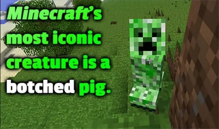 В первые годы существования Minecraft, работая над созданием свиньи, Маркус «Нотч» Перссон перепутал переменные для высоты и длины. Результатом стала вертикальная модель с четырьмя ногами из блоков меньшего размера. Оставалось только раскрасить ее в зеленоватый цвет и добавить жуткое лицо, и монстр готов!