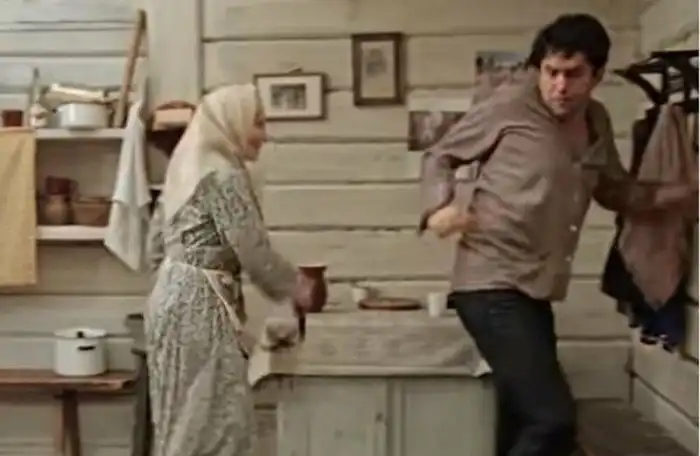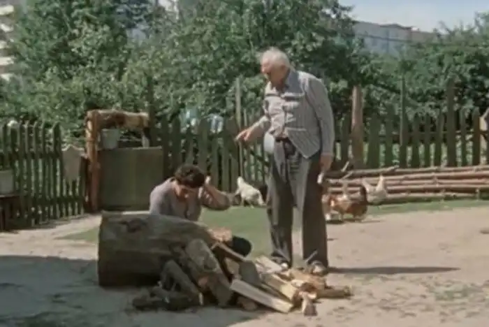 Вот отец говорит с сыном. Старик хозяин положения. Сын слушает, внимает. А вот еще кадр. Семья Василия в ссоре.Жена изменила со старой любовью. Грядет развод. Грустно, больно… Оба в душе растеряны. Но ведь как по-человечески себя ведут...