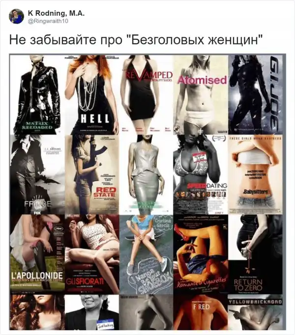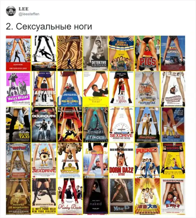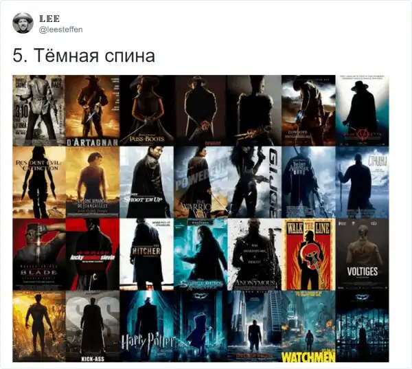 Например, в этом коллаже "leesteffen" собрал постеры, на которых женские персонажи изображены вполоборота.
