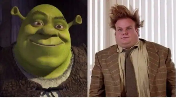 Крис Фарли, озвучивавший Шрека, работал над фильмом больше года и успел завершить примерно 80-90% работы прежде, чем в возрасте 33 лет умер от передозировки наркотиков 18 декабря 1997 года. Однако вместо того, чтобы закончить фильм, используя аудиозаписи Фарли и помощь дублера, студия Universal решила полностью переделать звук, пригласив для озвучания комика Майка Майерса. "Студия сделала то, что было необходимо, - говорил позднее брат Фарли, Кевин. - Это была трагедия... Майк проделал отличную работу, но остался ни при чем".