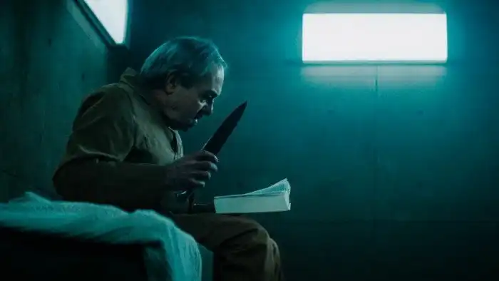 Джесси прикована наручниками, кровать крепкая, а ключ далеко - ситуация безвыходная. Ко всему прочему двери в дом открыты, бродячая собака прибежала на запах мертвечины и начинает обгладывать Брюса, да ещё ночью приходит то ли реальный, то ли вызванный воспалённым мозгом Джесси Лунный человек.