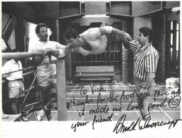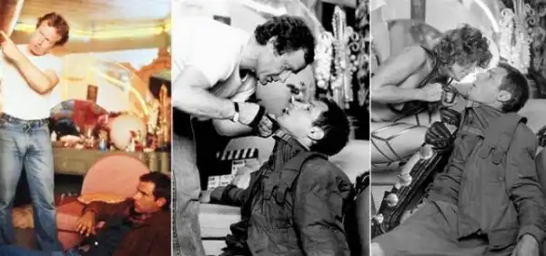 Джоэл Крамер, Арнольд Шварценеггер и Вик Армстронг репетируют сцену в «Вспомнить всё», 1990 год