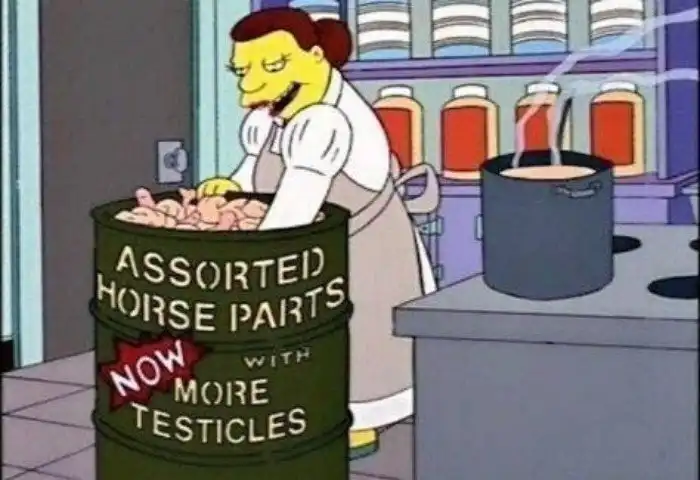 Подмена традиционного мяса конскими субпробуктами произошла в одном из выпусков "Симпсонов" 1994 года. А в 2013-м в Европе действительно разгорелся скандал, связанный с использованием производителями конины вместо традиционных видов мяса. Ее обнаружили даже в знаменитых шведских фрикадельках!