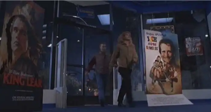 В сцене у видеомагазина на стенах можно увидеть постеры несуществующих фильмов: особенно впечатляет экранизация пьесы Шекспира "Король Лир" с Арнольдом Шварцнеггером в главной роли (слева).
