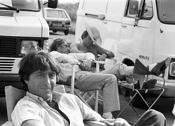 Франсис Вебер, Пьер Ришар и Жерар Депардье на съёмках фильма "Невезучие"