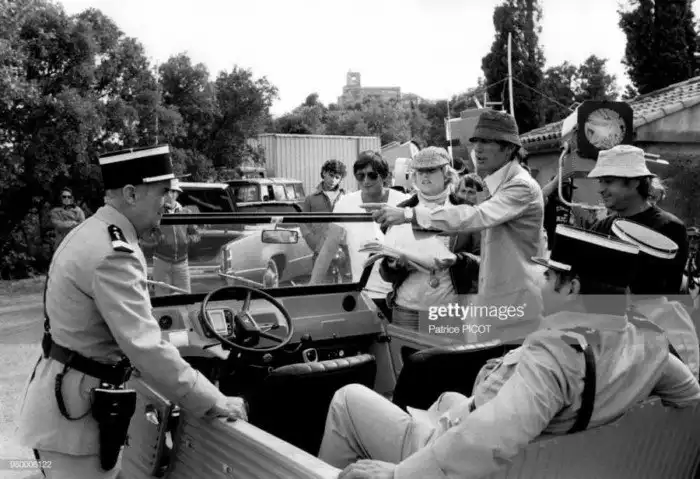 Жерар Ури, Валери Мересс и Пьер Ришар на съёмках фильма "Укол зонтиком"
