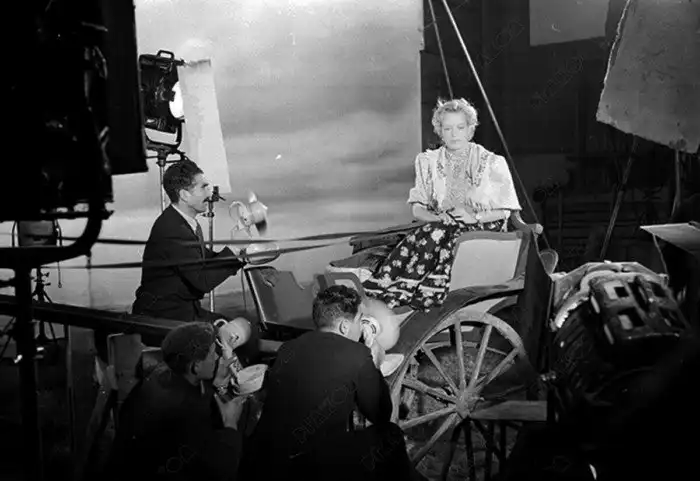 7. абочий процесс съемки фильма "Кубанские казаки" на студии "Мосфильм"; в центре: актриса М. Ладынина. 1949 г.