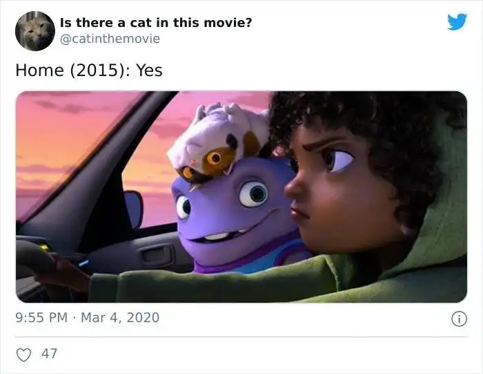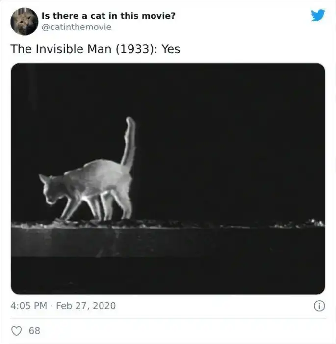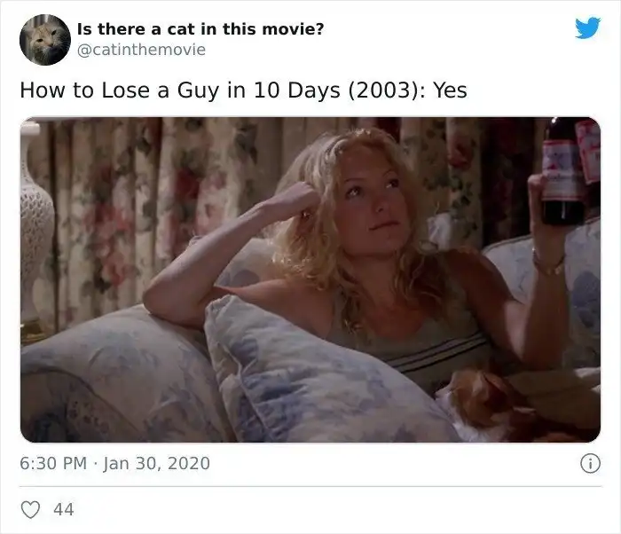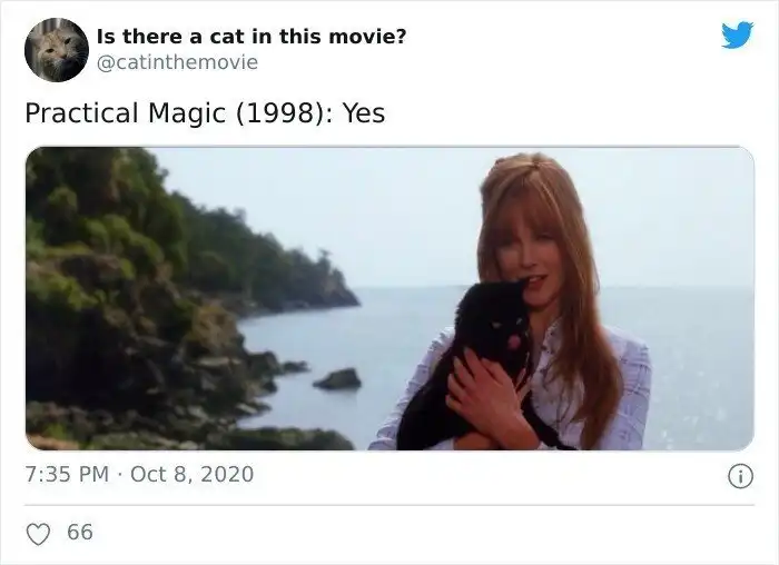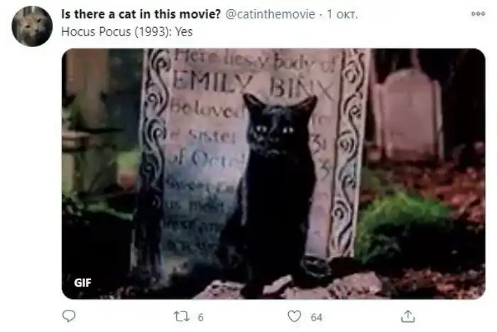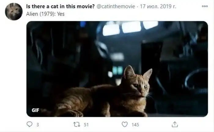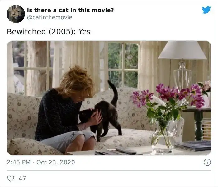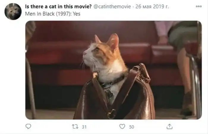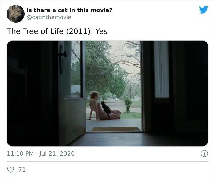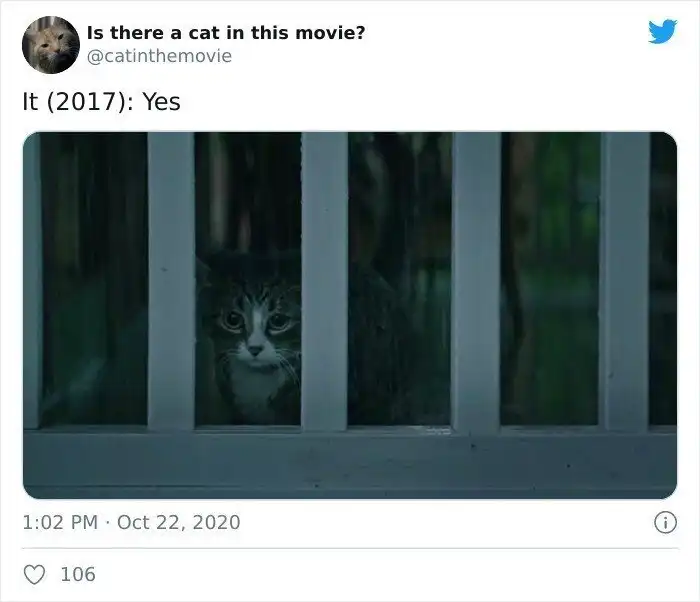 Даже если кошка появляется на экране всего лишь на мгновение - фильм смело можно включать в этот список.