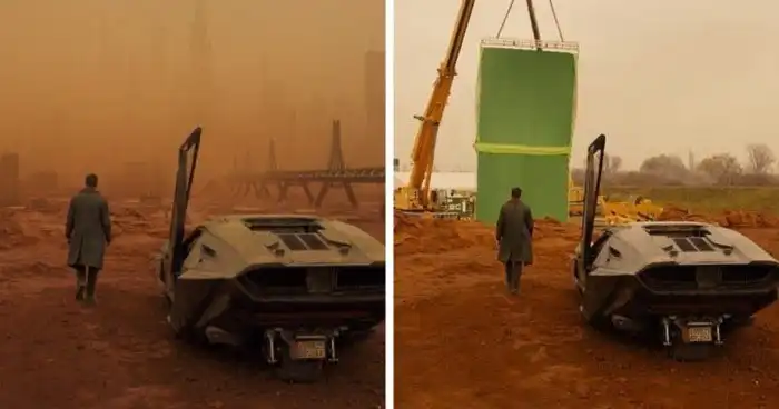 14. Съёмки фильма «Бегущий по лезвию 2049» (2017): до и после применения визуальных эффектов