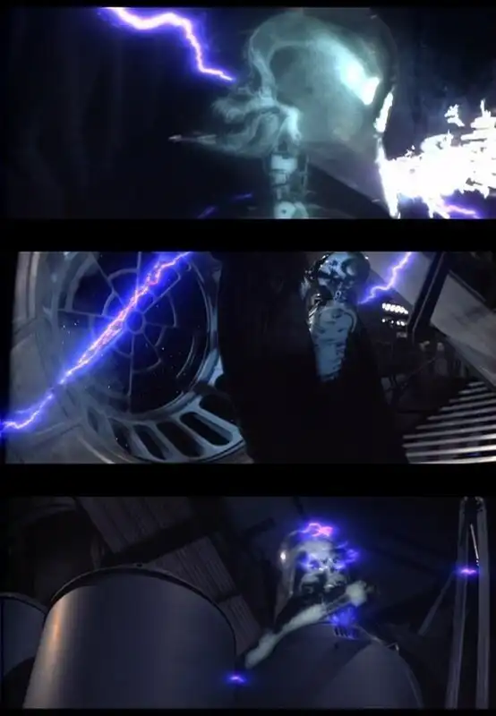 "Звёздные войны: Возвращение джедая". Скелет Дарта Вейдера некоторое время виден с разных сторон, когда он поражен молнией Императора. Видны многие искусственные компоненты, включая его механическую правую руку, респиратор и как минимум 3 замененных позвонка.