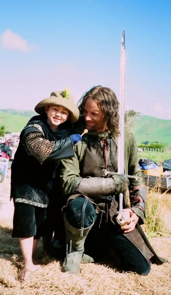 Вигго Мортенсен с юным полуросликом на съемках "Властелина колец"