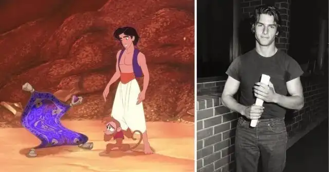Хотя штаны главного героя в диснеевском "Аладдине" были явно "содраны" с фирменного стиля рэппера МС Хаммера, остальная часть персонажа была срисована с актера Тома Круза. Изначально "Аладдин" был больше похож на Майкла Дж. Фокса (главный герой фильмов "Назад в будущее"), но потом было решено переделать его так, чтобы он больше походил на красавца Тома Круза - ведь в этого парня должна влюбиться принцесса Жасмин.