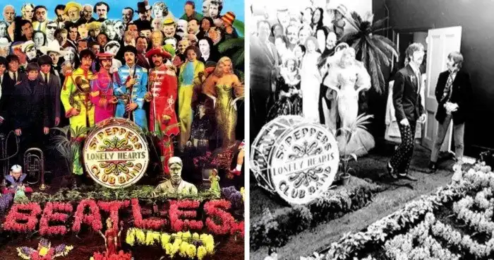 8. Закадровое фото создания обложки ещё одного альбома The Beatles «Sgt. Pepper’s Lonely Hearts Club Band»