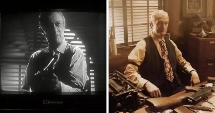 12. Кадр со съёмок фильма «Ангелы с грязными душами», которым Кевин пугал доставщика пиццы в фильме «Один дома»