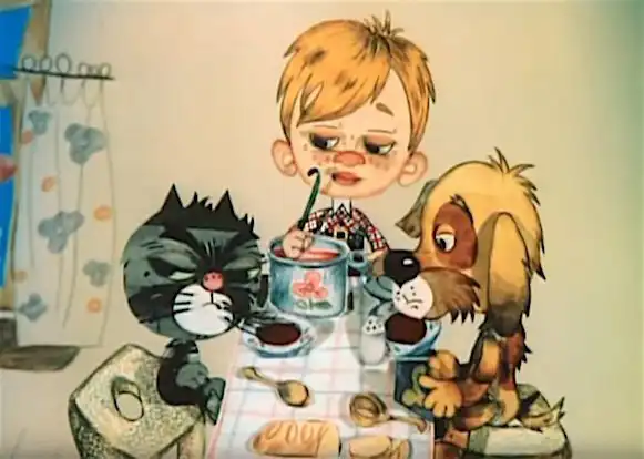 Но при чём же тут Людмила Гурченко? Дело в том, что незадолго до мультфильма "Трое из Простоквашино" по повести "Дядя Фёдор, кот и пёс" был снят одноимённый мультфильм. В нём персонажи выглядели совершенно иначе: