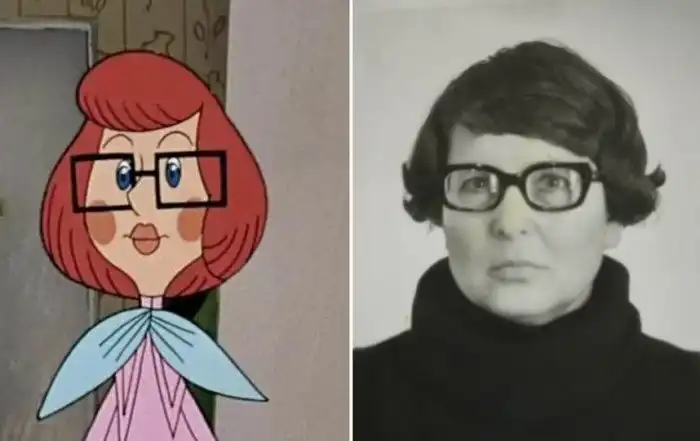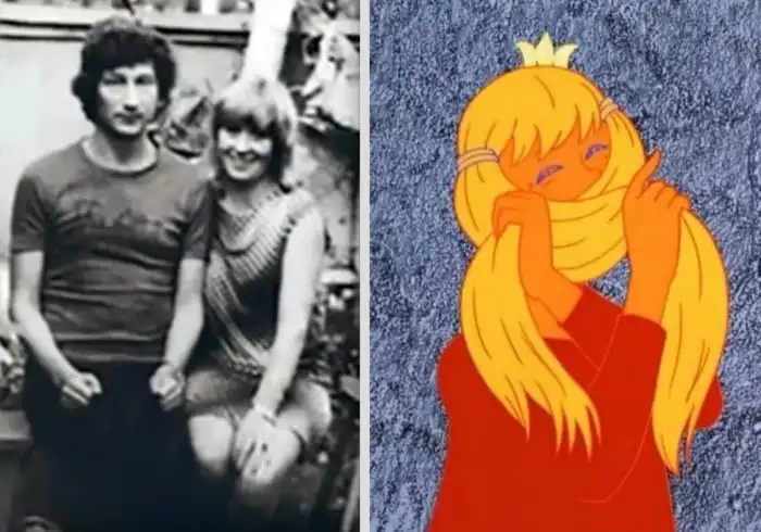 ...а "такой как надо" она стала, когда за основу был взят образ Марины Энтиной – жены поэта Юрия Энтина, сочинившего стихи к песням из мультфильма (на фото они вдвоём):